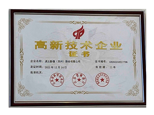 1月,虎丘影像(蘇州)有限公司設(shè)立于蘇州高新區(qū)鹿山路國家環(huán)保產(chǎn)業(yè)園