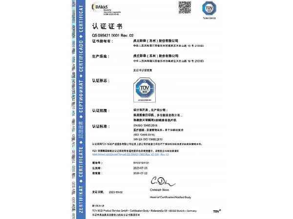 通過ISO 13485:2016醫(yī)療器械質(zhì)量管理體系認證