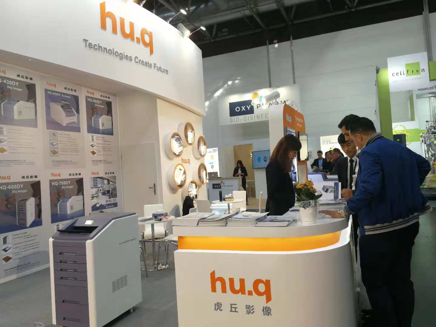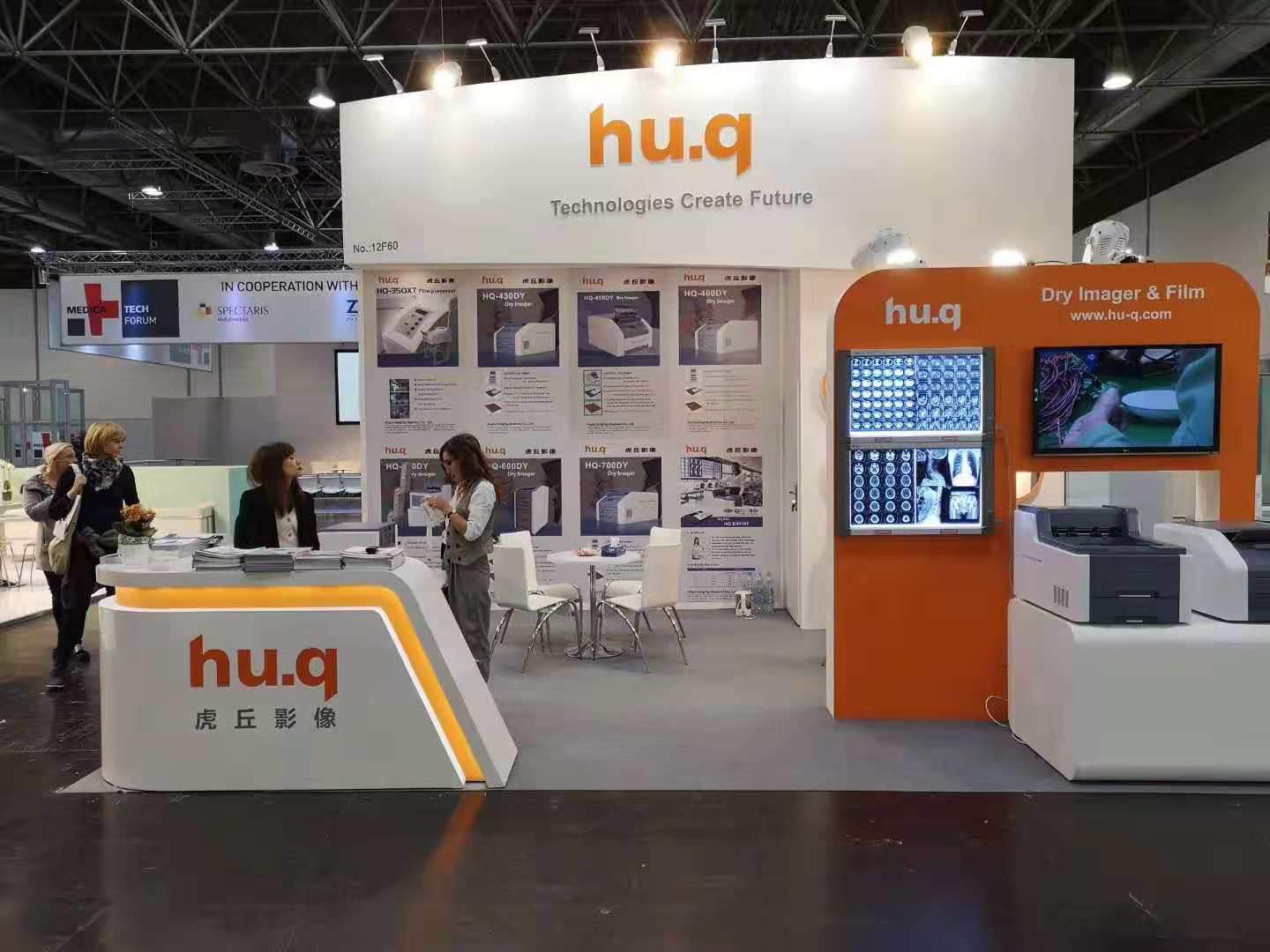 本次MEDICA展會(huì)吸引了來自130多個(gè)國(guó)際和地區(qū)的5000多家公司前來參展。虎丘影像的展臺(tái)位于H12-F60, 展臺(tái)風(fēng)格簡(jiǎn)潔、大方,以橙色和白色基調(diào)為主,輔以燈光映射,在展區(qū)顯得尤為突出。