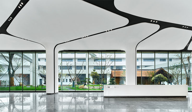 虎丘影像新總部基地建筑為地下一層,地上四層,總建筑面積達(dá)46418平方米。在建筑的中部采用了中國傳統(tǒng)建筑中“四水歸堂”建筑文化的布局設(shè)計(jì),體現(xiàn)出虎丘影像在不斷追求科技創(chuàng)新的同時(shí),始終秉承人與自然和諧共存的發(fā)展理念,同時(shí)整棟建筑簡約智能、低碳節(jié)能、自然和諧的建筑設(shè)計(jì)理念,以及屋頂分布式光伏電站、數(shù)字化能源管理平臺(tái),智慧照明、空調(diào)控制系統(tǒng),新能源車輛高速充電站等高標(biāo)準(zhǔn)配置,可滿足虎丘影像未來20年,在國家綠色低碳政策要求下的發(fā)展需求。