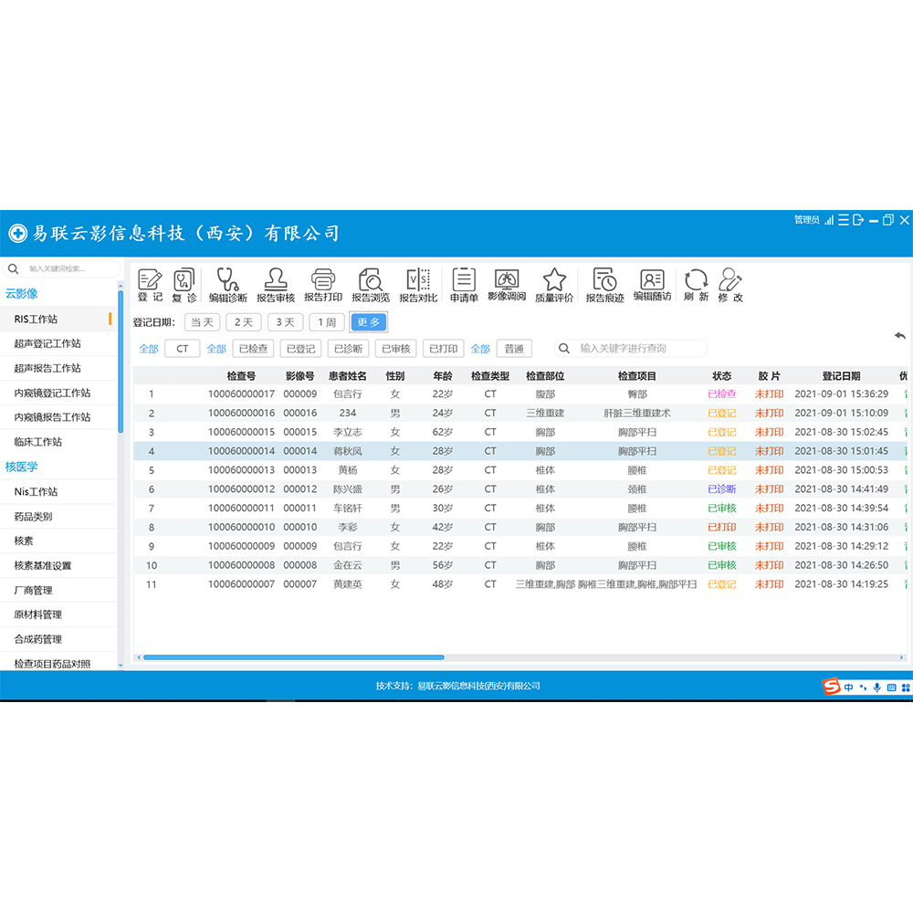全景影像診斷,用心改變,讓診斷突破極限,賦能健康中國。滿足院內(nèi)影像科室和臨床科室靈活歸檔管理和調(diào)閱影像。產(chǎn)品組成:登記工作站、 技師工作站、 放射診斷報告工作站、 DICOM影像處理工作站、 臨床瀏覽工作站, 刻錄備份軟件、 超聲/內(nèi)窺診斷工作站、統(tǒng)計工作站等。